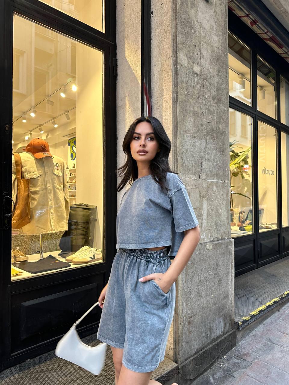 Plus Acid Wash Boxy Crop And Sweat Short Set