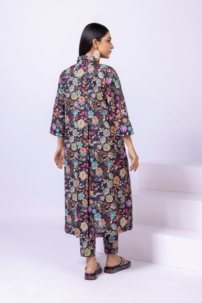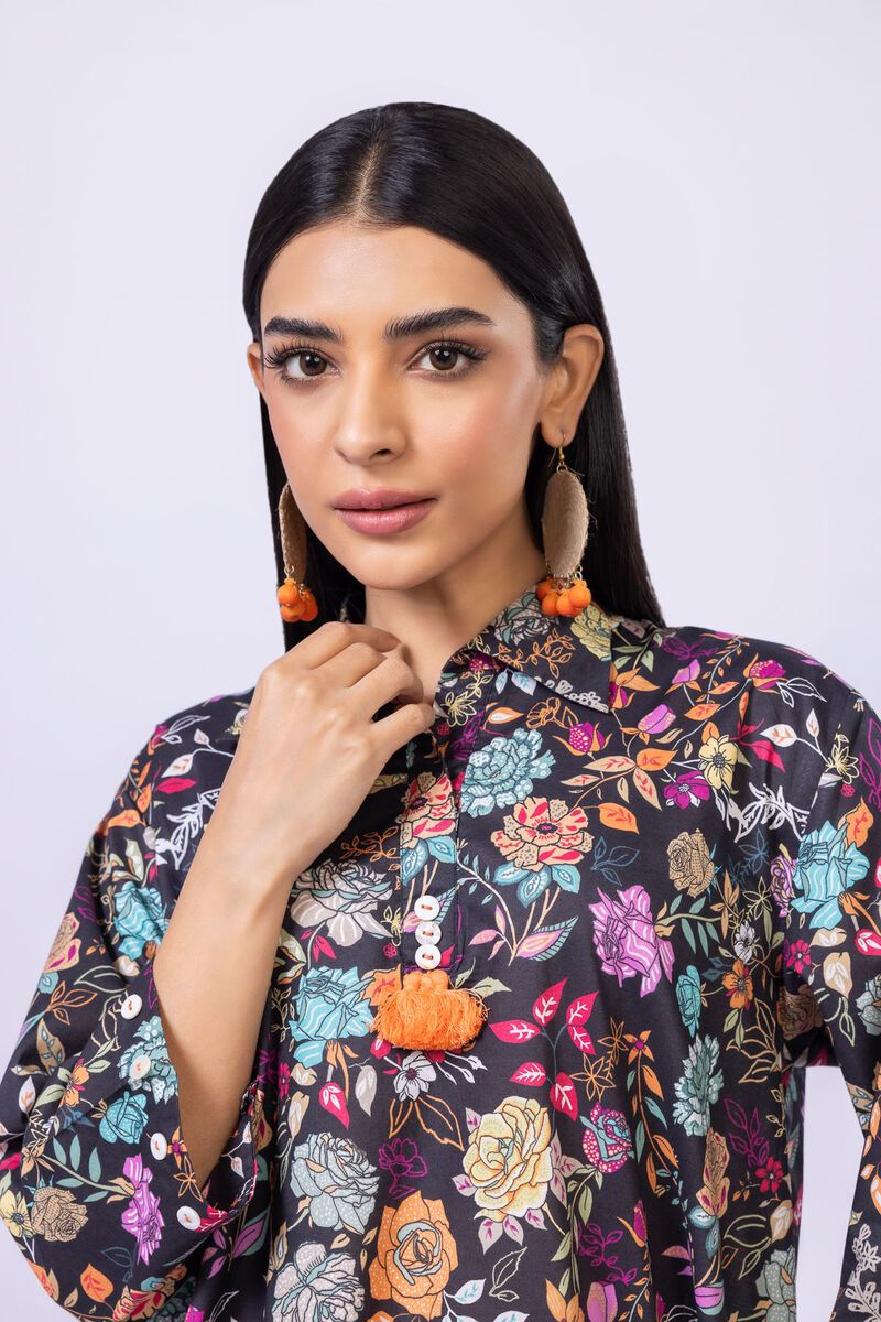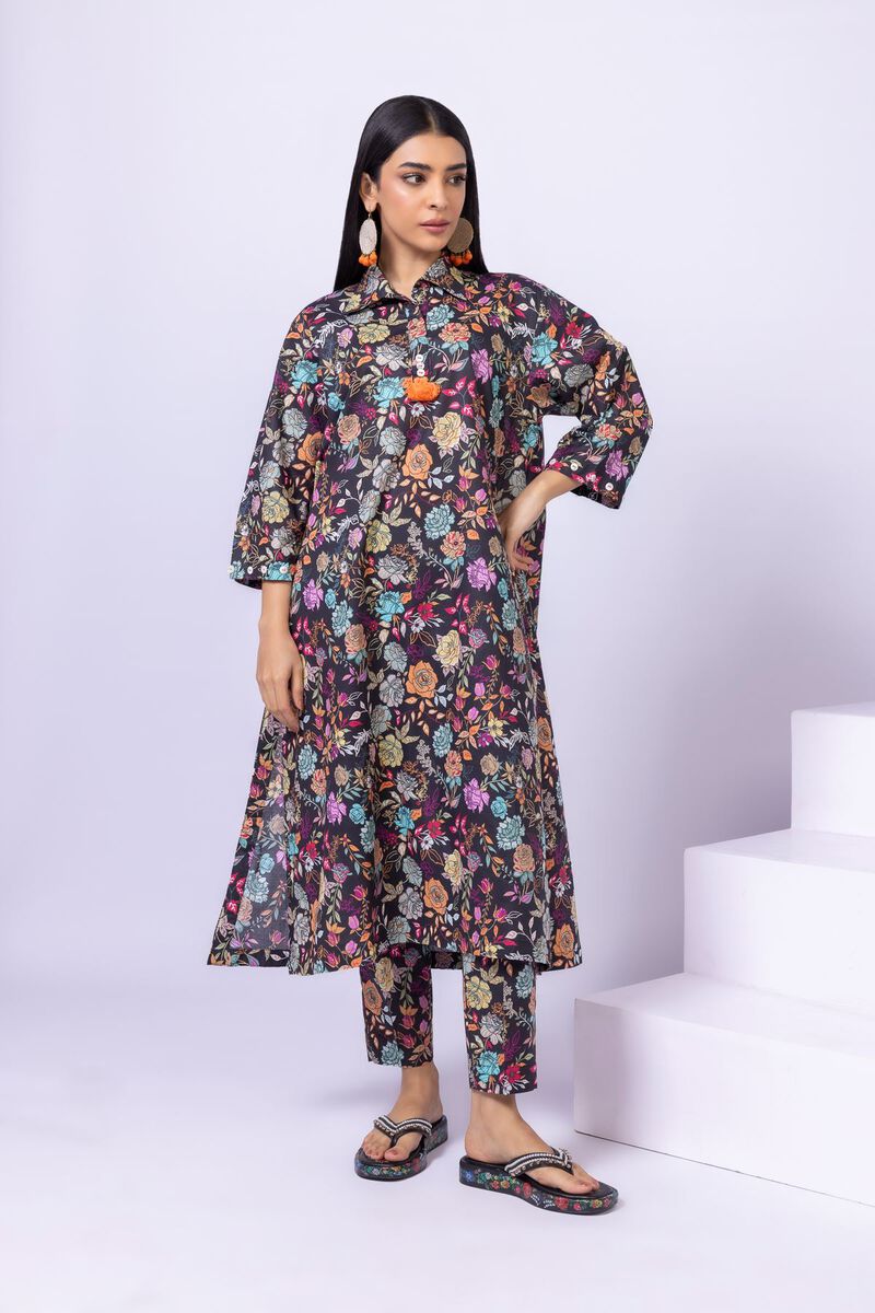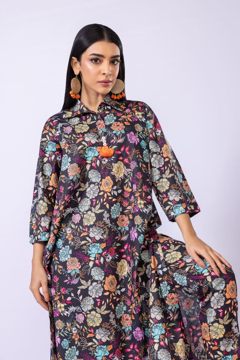 • Description: A long floral printed kurta featuring three-quarter sleeves with buttons, a wing collar and buttons on the neckline.