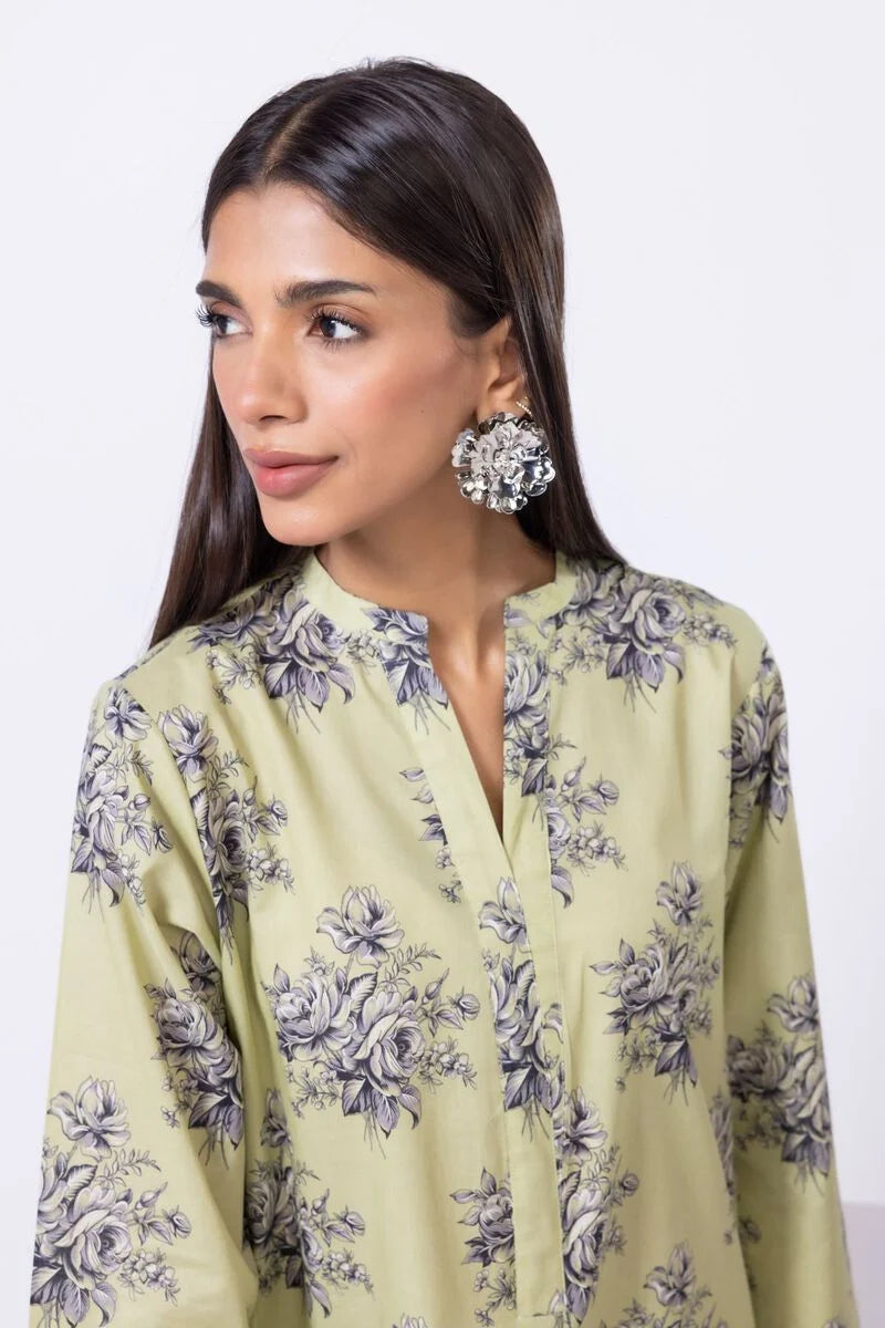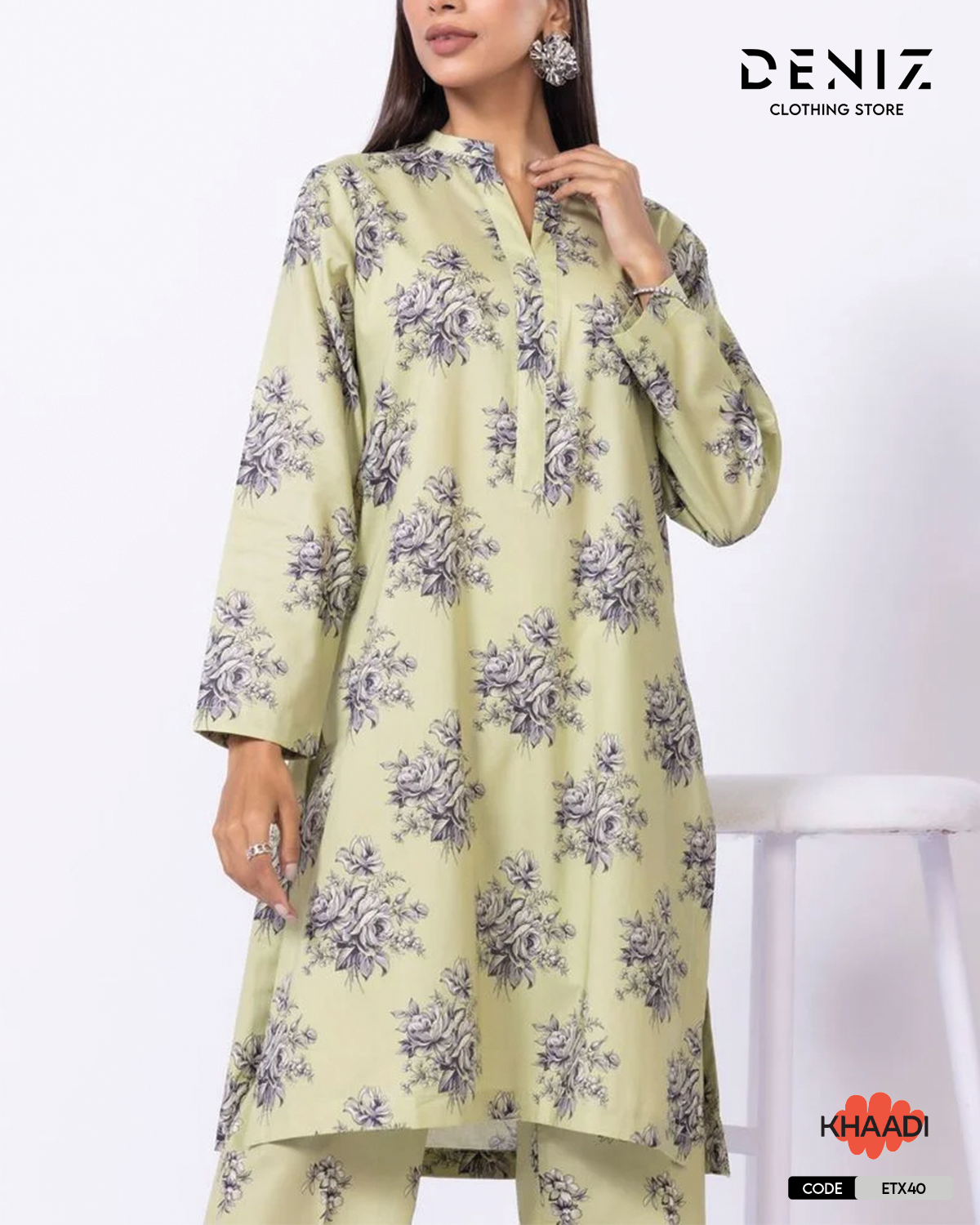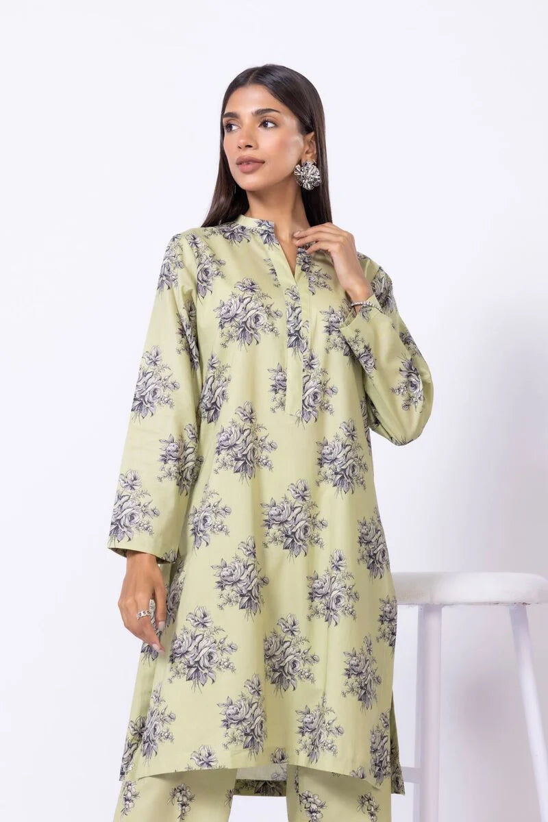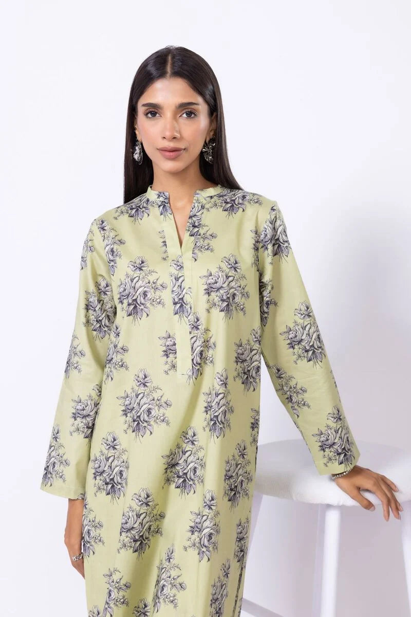• Description: A floral printed drop-shoulder kurta featuring full sleeves and a band collar.