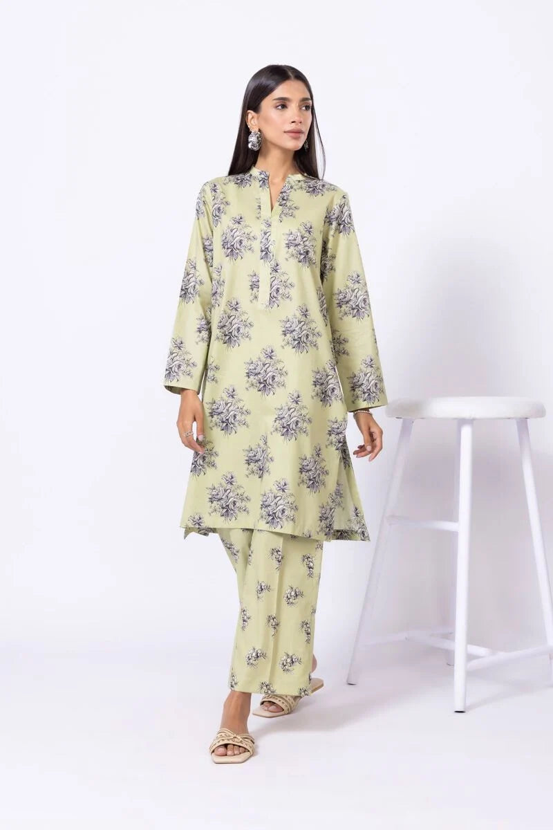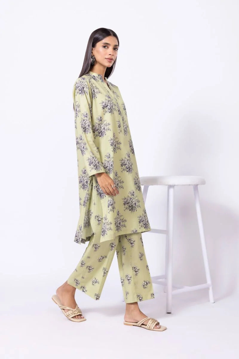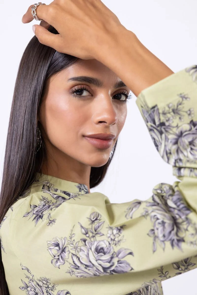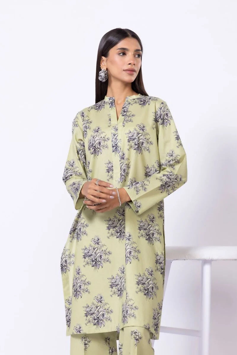 • Description: A floral printed drop-shoulder kurta featuring full sleeves and a band collar.