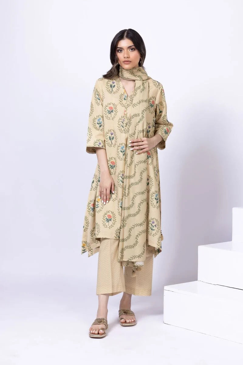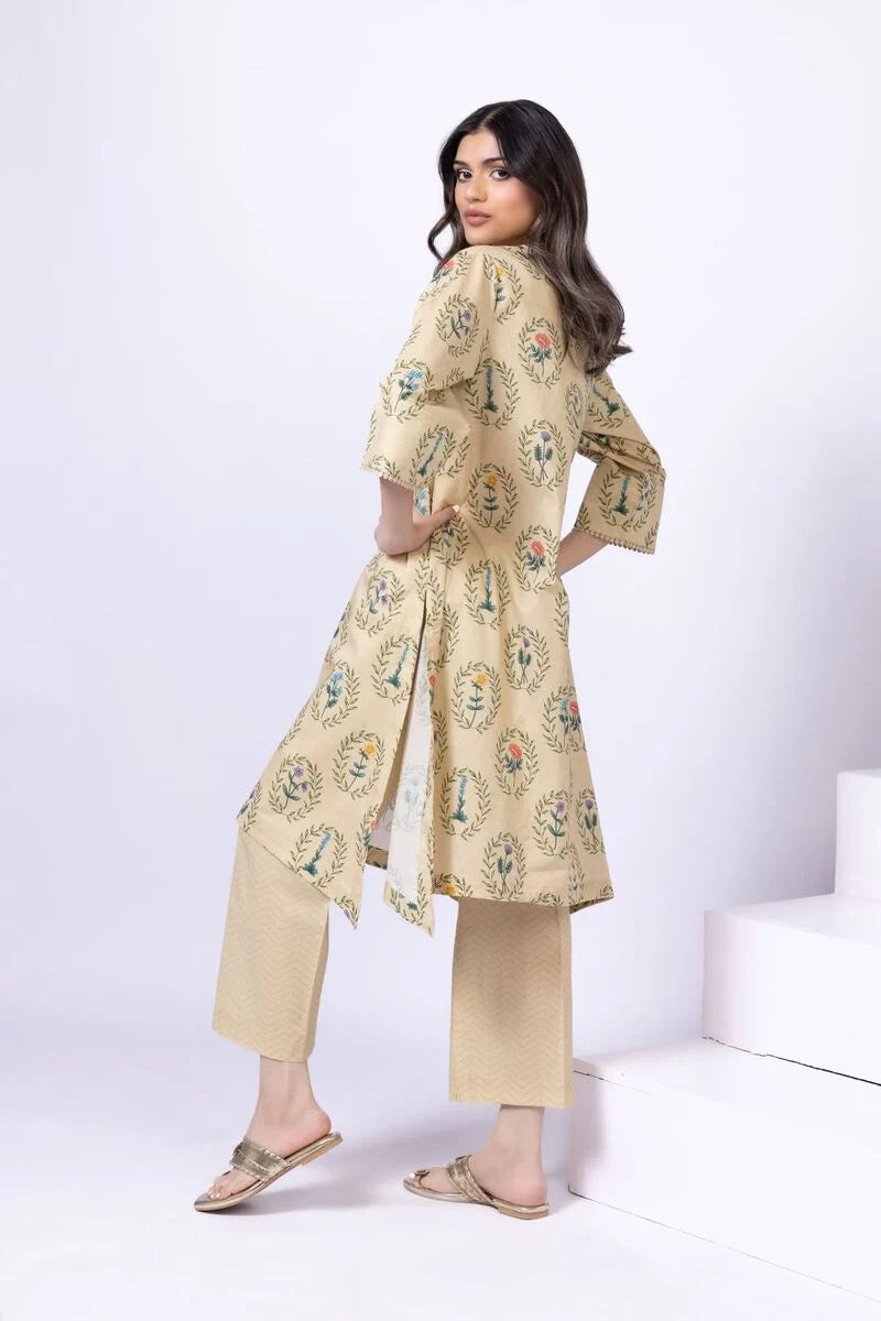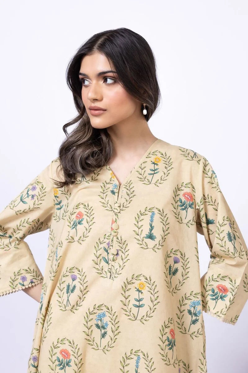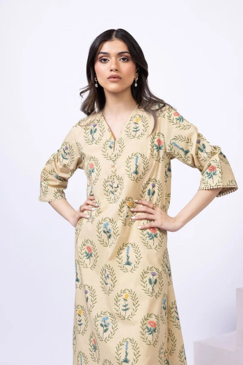 • Description: A floral printed kurta featuring half-sleeves with lace inserts, a V-neckline and buttons on the neckline.