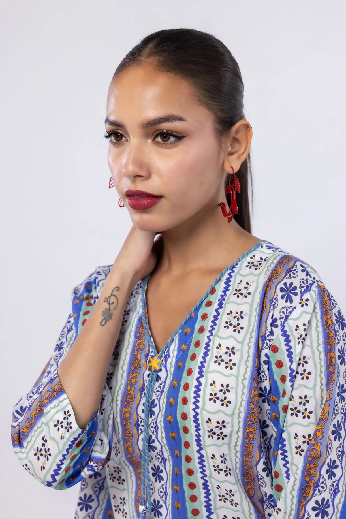 • Description: A short floral printed kurta featuring full sleeves with beautiful neckline.