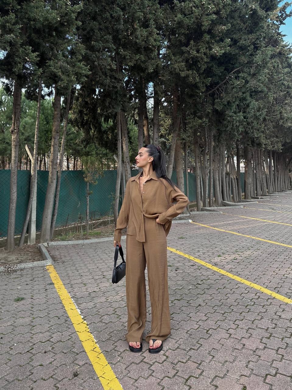 Stay cool and stylish this summer with our lightweight co-ord set, made in Turkey. Crafted from a soft blend of 85% modal and 15% polyester, it features a shirt-collar top and wide-leg pants for a relaxed, modern look. Perfect for casual days, brunch, or warm-weather outings.